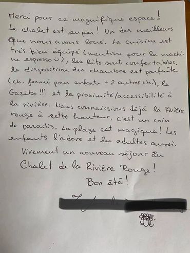L'été vous pourrez vous rafraîchir dans la rivière rouge situé à quelques pas du chalet et vous prélasser sur la magnifique plage de sable qui la borde sur près de 1 km.